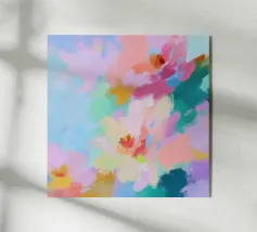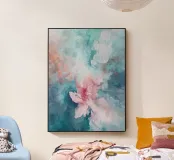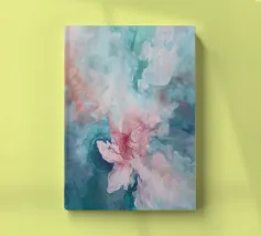 Una composizione astratta serena che fonde morbidi toni acquamarina con delicati accenti rosa cipria e avorio. Pennellate fluide e organiche creano un senso di leggerezza e movimento delicato, evocando calma, equilibrio e sobria eleganza. Progettato per interni moderni che privilegiano morbidezza, atmosfera e raffinatezza contemporanea.