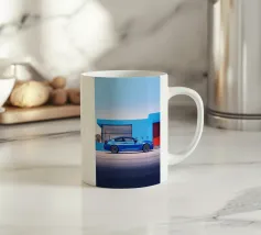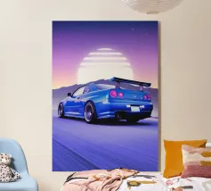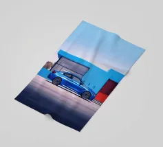 L'accattivante auto sportiva BMW M4 blu, un capolavoro minimalista che emana fascino senza tempo e potenza sportiva.