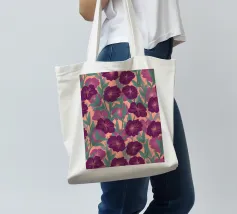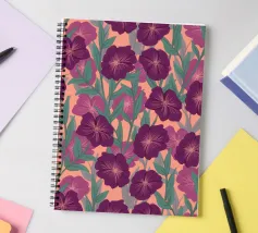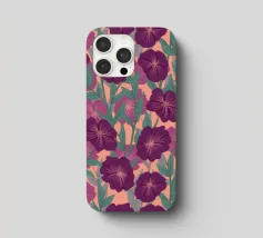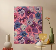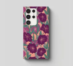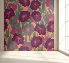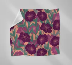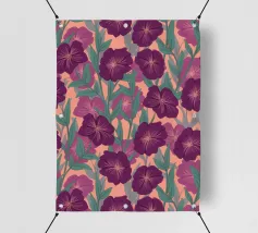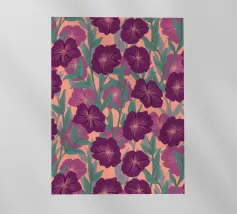 Digitally hand painted striking purple flowers, a bold floral motif that brings life and energy.