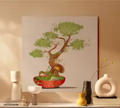 This detailed illustration of a calming bonsai tree creates a peaceful and soothing atmosphere in any room.