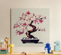 Questa illustrazione dettagliata di un bonsai rassicurante crea un'atmosfera pacifica e rilassante in qualsiasi stanza.