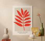 Bold Botanical: Part of the Botanical Collection, this striking art print features an abstract cut-out of vibrant red leaves set against a neutral background. Its minimalist design and bold color make it a standout piece, perfect for adding a touch of modern elegance and natural beauty to any room