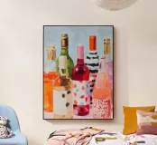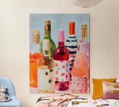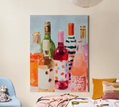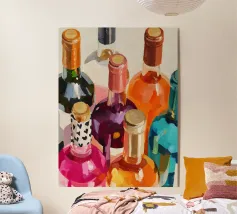 A vibrant still life of colorful wine bottles painted in expressive brushstrokes. This artwork celebrates shared moments, warmth, and joyful evenings.