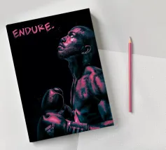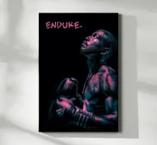 The poster features a powerful close-up of a boxer, his body glistening with sweat and determination. Dramatic lighting in deep violet and black tones creates a bold, almost cinematic effect, emphasizing the fighter’s strength and perseverance. The word "ENDURE." in rugged, splattered typography reinforces the core message—success begins with endurance.