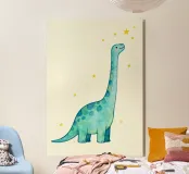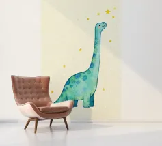 Una delicata illustrazione di Brachiosauro pensata per le camerette e le stanze dei bambini