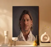 Illustrazione caricaturale umoristica del noto attore e produttore cinematografico americano Brad Pitt. Una delle caricature realizzate per la serie Celebrity Sunday, in cui un personaggio famoso viene ritratto in un giorno. L'idea è di mostrarli come in una fototessera per avere coerenza.
