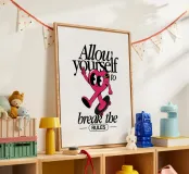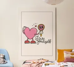 Questo disegno giocoso e ribelle presenta un cuore rosa sfacciato su uno skateboard che infrange le regole con un atteggiamento disinvolto. Lo stile moderno dei cartoni animati, unito al messaggio motivante "Permettiti di infrangere le regole", rende questa stampa d'arte la scelta perfetta per le menti creative, gli spiriti liberi e tutti coloro che rifiutano di essere confinati dai confini. Ideale come decorazione murale di tendenza, come accento ispiratore nell'ufficio di casa o come regalo per skateboarder, amanti della street art e individualisti.