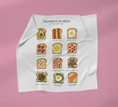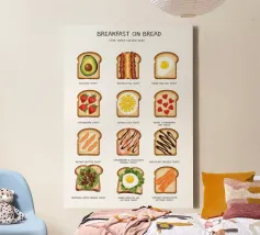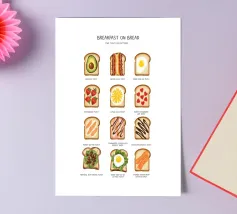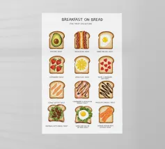 Una collezione divertente e colorata di dodici diversi toast, ciascuno condito con ingredienti unici per la colazione.