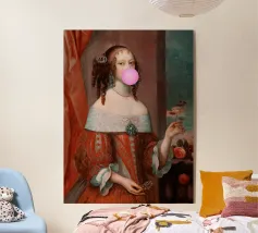 Abbracciate l'eleganza stravagante di una contessa moderna con questo vivace disegno ispirato al bubblegum. Perfetto connubio tra raffinatezza regale e cultura pop, quest'opera d'arte cattura l'essenza di una donna audace e sicura di sé con un tocco di divertimento. Ideale per chi ama le opere d'arte uniche e originali che si distinguono, questo pezzo porta un'aria di regalità in qualsiasi spazio, infuso con un tocco di colore e di atteggiamento.