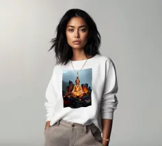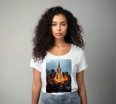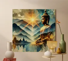 Buddha è un'opera d'arte digitale, realizzata in computer grafica. Al centro c'è una rappresentazione stilizzata del Buddha, calma, espressiva e armoniosa. Linee chiare, dolci sfumature di colore e una composizione equilibrata conferiscono all'immagine profondità spirituale ed eleganza senza tempo. La realizzazione digitale enfatizza l'aura meditativa della figura e invita a fermarsi per un momento. Buddha è sinonimo di consapevolezza, serenità e combinazione di tradizione e linguaggio visivo moderno.