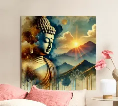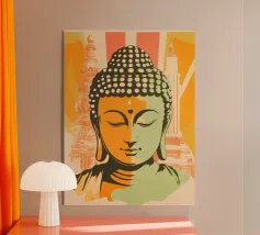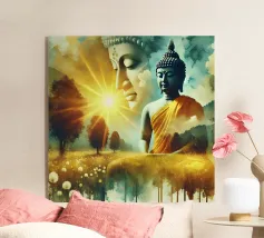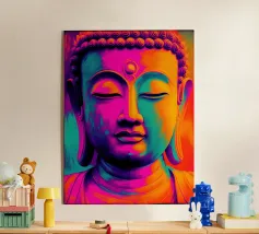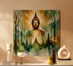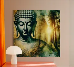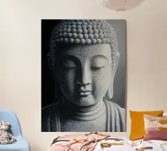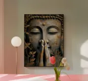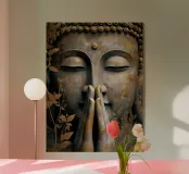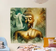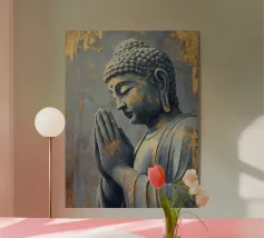 Questo sublime poster mostra una statua di Buddha in posizione di preghiera, circondata da delicati viticci dorati. La rappresentazione fotorealistica con toni caldi dell'oro e freddi dell'argento ricorda l'arte antica dei templi, combinata con una visualizzazione 3D contemporanea. Gli effetti delle intemperie e la morbida patina conferiscono all'opera una profondità spirituale. Perfetto per gli ambienti che devono emanare calma e consapevolezza. Una dichiarazione forte per chiunque apprezzi la saggezza orientale e l'atmosfera meditativa: una spiritualità senza tempo per la casa moderna.