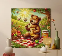 La piccola ape svolazza in un prato vibrante portando con sé una piccola borsa piena di nettare.