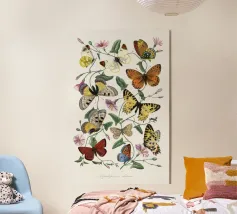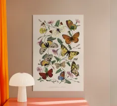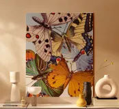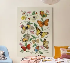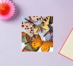 Un disegno colorato con immagini di farfalle vintage.