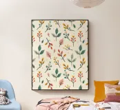 Portate un tocco di natura giocosa nel vostro spazio con questo simpatico motivo a foglie. I tenui colori pastello e i rami disegnati a mano creano un'atmosfera accogliente e fresca. Perfetto per aggiungere un po' di fascino botanico a qualsiasi stanza.