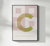 C-TYPEFACE in un design senza tempo - poster tipografico con colori vivaci e un gioco di forme sullo sfondo.