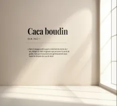 "Caca Boudin" è un omaggio all'innocenza e all'umorismo infantile. Una parola che non significa nulla... eppure dice tutto: spontaneità, gioia di suscitare un sorriso, leggerezza di fronte ai piccoli drammi della vita quotidiana. In questo dipinto, il colore e la forma danzano intorno a questa parola magica, come un'eterna ricreazione. Un'opera che ci ricorda che a volte la semplicità è la più grande follia.