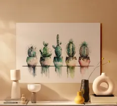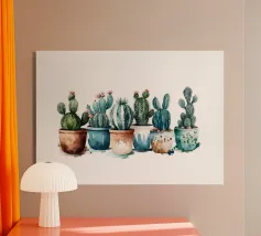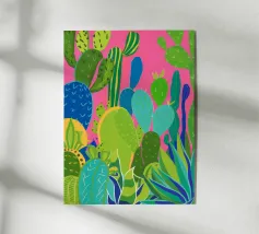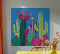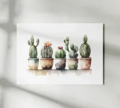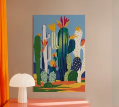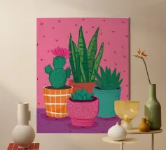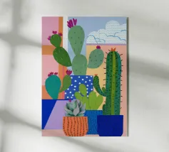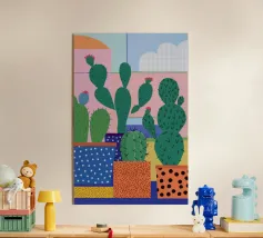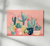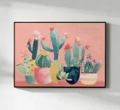 Questo allegro poster presenta simpatiche piante di cactus in piena fioritura, su uno sfondo rosa tenue che ne esalta il fascino giocoso e femminile. I fiori luminosi e le forme arrotondate creano una composizione allegra e spensierata, con un'atmosfera calda ed edificante. L'estetica dolce e moderna lo rende particolarmente adatto a camere da letto, nursery, uffici domestici e spazi creativi, aggiungendo un tocco di gioia, colore e stile botanico.