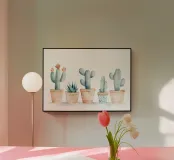 cactus succulente piante in vaso cactus fioriere vasi in terracotta vasi in ceramica piante da interno spighe botanico natura verde piante aride piante del deserto composizione di piante decorazione per la casa texture acquerello cura delle piante arredamento minimalista colori tenui