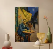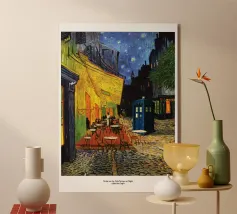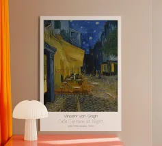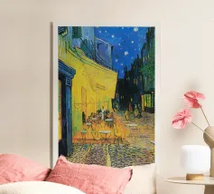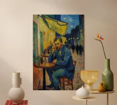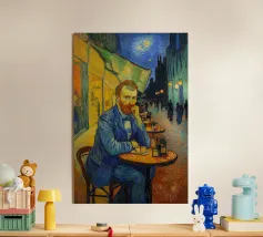 Nel famoso dipinto di Vincent van Gogh "Terrazza del caffè di sera", l'artista siede pensieroso in un vivace caffè notturno, circondato da un cielo stellato scintillante.