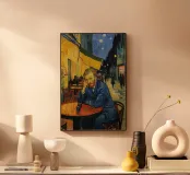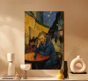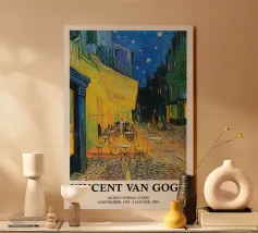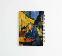 Nel famoso dipinto di Vincent van Gogh "Terrazza del caffè di sera", l'artista siede pensieroso in un vivace caffè notturno, circondato da un cielo stellato scintillante.