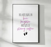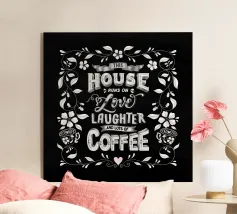 Questa casa funziona con l'amore, le risate e le tazze di caffè forte. Questa casa funziona con l'amore, le risate e le tazze di caffè forte. Design tipografico moderno.