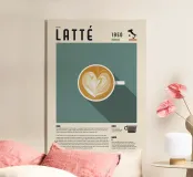 caffè latte latte art tazza bevanda espresso latte forma di cuore design informazioni testo mappa ricetta anno 1950 Italia storia preparazione delle bevande caffè linea guida icona