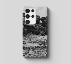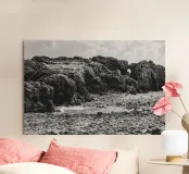 Godetevi la bellezza mediterranea sulla costa rocciosa, dove il sole splende sul mare scintillante. Questa splendida fotografia in bianco e nero cattura perfettamente l'atmosfera rilassante e la struttura naturale delle rocce. Ideale per le sensazioni di una vacanza romantica!