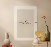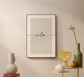 Date un tocco di serenità al vostro spazio con la nostra stampa minimalista "Calm". Caratterizzata da un bellissimo design tipografico ispirato allo stile scandinavo e all'elegante calligrafia. Le calde tonalità del beige aggiungono un'atmosfera rilassante e pacifica a qualsiasi ambiente. Perfetta per creare un'atmosfera accogliente e invitante nella vostra casa.