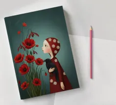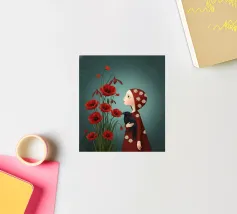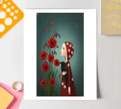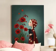 Camille era in piedi, una macchia cremisi solitaria in un mondo dai colori tenui, lo sguardo perso tra i vivaci papaveri. Tra le sue braccia, un corvo, un'ombra resa tangibile, le offriva un conforto silenzioso e consapevole. Ogni petalo era un fragile sospiro, ogni piuma un segreto sussurrato. Condividevano una silenziosa comprensione, una danza malinconica tra il fugace fiorire della vita e la presenza persistente e oscura del ricordo. Il suo cuore, un piccolo uccellino rosso, batteva dolcemente sotto lo sguardo attento del corvo, desiderando una primavera che sembrava perennemente irraggiungibile.
