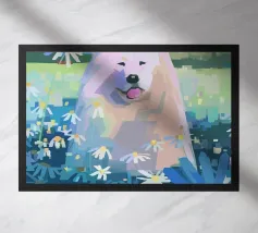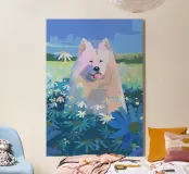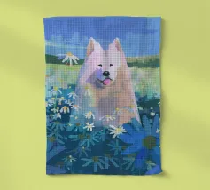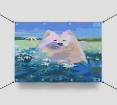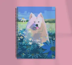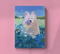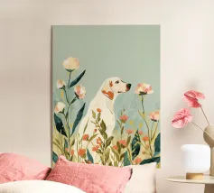 cane fiori margherite campo natura prato animale animale domestico all'aperto paesaggio cielo blu verde bianco rosa erba felice estate fioritura canino