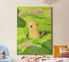 cane prato prato fiori giardini natura piante alberi luce solare canino animali domestici all'aperto parco fiori di campo primavera animali verde pascolo cespugli ambiente