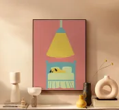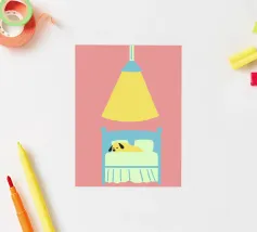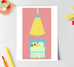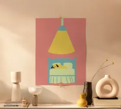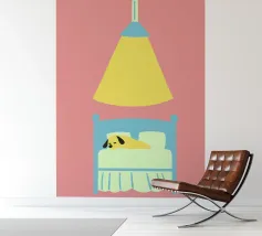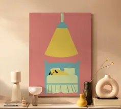 Create un'atmosfera calma e pacifica nella vostra casa con questa affascinante illustrazione da parete di un cane che dorme! Questo disegno raffigura un cane in un sonno profondo