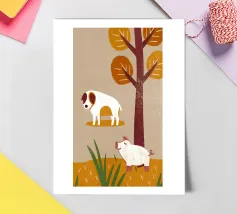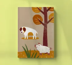 Cane e maiale dal design retrò e pop: Un tocco di nostalgia in stile moderno! Combinate il fascino retrò con lo stile pop art contemporaneo in questo design unico.