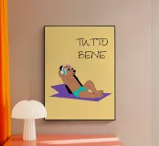 L'illustrazione "Relaxing Dog" raffigura un cane che si rilassa, perfetto per decorare la casa e creare un'atmosfera confortevole.