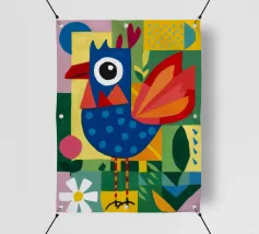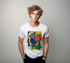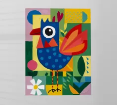 Una miscela caotica di forme astratte e colori vivaci, che genera un movimento dinamico e un'energia artistica sfrenata.