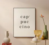 Amore per il cappuccino. Tipografia in nero e bianco (trasparente). È possibile cambiare il colore dello sfondo. Poster tipografico minimalista.