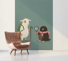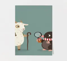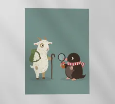 Illustrazione di una capretta e di una talpa, ideale per la cameretta dei bambini