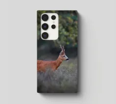 Maschio di capriolo in un campo aperto nei Paesi Bassi.