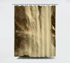 La nebbia sale alla sua base, riempiendo l'aria di freschezza, mentre il potente scroscio si fonde con i dolci suoni della natura, creando una scena maestosa e serena.