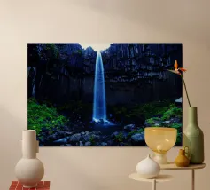Künstlerische Fotografie des Svartifoss Wasserfalls in Island. Traumhafter Wasserfall in atemberaubender Landschaft in Island.