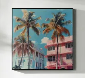 Case e palme rosa e blu plexiglass