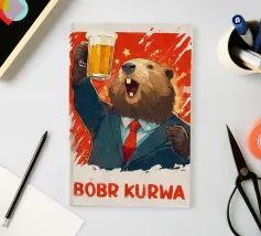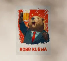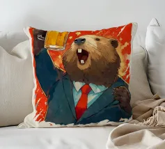 castoro birra abito cravatta celebrazione animale tifo tenere tazza cartone animato antropomorfo rosso arancione stelle abbigliamento formale illustrazione schizzo di fondo schiuma di birra brindisi espressione del viso