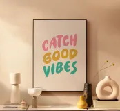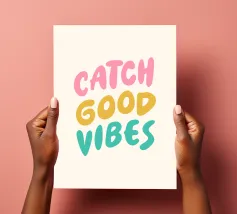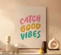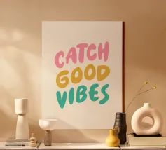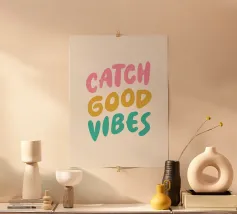 Porta un po' di sole e di energia positiva nel tuo spazio con questa colorata stampa tipografica, "Catch Good Vibes". Caratterizzato da un font audace di ispirazione retrò e da una tavolozza vivace e giocosa di rosa, giallo e verde acqua, questo design è un promemoria quotidiano per abbracciare solo l'ottimismo e le vibrazioni positive. È l'elemento perfetto e accattivante per illuminare il tuo soggiorno, la tua camera da letto o il tuo ufficio e aggiungere un tocco unico di personalità alle tue pareti. È perfetto come regalo per i tuoi amici più cari.