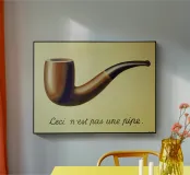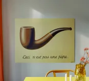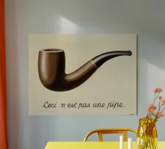 Ceci n'est pas une pipe di René Magritte - noto anche come Il tradimento delle immagini - presenta una rappresentazione realistica di una pipa con l'iconica scritta "Ceci n'est pas une pipe" (Questa non è una pipa). L'opera di Magritte sfida la percezione e la rappresentazione, sottolineando la differenza tra un oggetto e la sua rappresentazione. La composizione pulita, la tavolozza tenue e il realismo preciso ne fanno un'esplorazione stimolante del linguaggio, della realtà e dell'illusione. Ideale per gli amanti delle stampe d'arte surrealista, dell'arredamento moderno e concettuale, delle riproduzioni di Magritte e delle opere d'arte iconiche, quest'opera d'arte porta con sé l'i