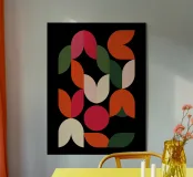 Abstract artwork, where vibrant floral shapes in rich reds, greens, and beiges collide with a cosmic energy. Perfect for adding a bold, modern touch to your home or wardrobe, this unique design shines on canvas, posters, stickers, and apparel. Elevate your space with a piece that blends nature’s beauty with starry inspiration.