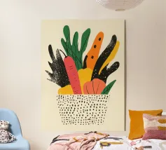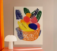 Con le sue texture audaci e i colori vivaci, questa illustrazione rivisita la classica natura morta in uno stile contemporaneo e vibrante. È il modo perfetto per ravvivare il vostro spazio vitale con un tocco artistico.