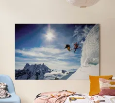 Provate il brivido dell'avventura alpina con questo splendido poster "Chamonix", che mostra le vette mozzafiato di una delle destinazioni sciistiche più iconiche del mondo. L'audace disegno diagonale mette in evidenza uno sciatore a mezz'aria, che si libra sullo sfondo drammatico di aspre montagne innevate e nuvole tempestose. Questa composizione monocromatica evoca sia la maestosità che la sfida delle Alpi. Perfetto per gli appassionati di sci, gli avventurieri o gli amanti dei paesaggi montani, questo poster porta lo spirito di Chamonix nel vostro spazio. Ideale per la casa, l'ufficio o la baita, è un omaggio alla bellezza e alla bellezza delle Alpi.