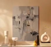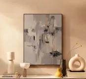 Una composizione astratta con toni dominanti di grigio e bianco, in cui le forme più scure del carboncino sembrano cascare o velare le aree più chiare, con sottili accenni di beige e linee sottili, creando un senso di profondità e movimento stratificato.