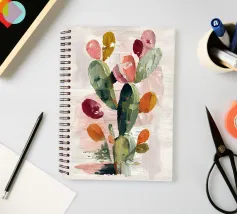 Un'affascinante opera d'arte ispirata al deserto con forme astratte di cactus in rosa e verde. Giocoso ma sofisticato, perfetto per un arredamento bohémien, sudoccidentale o ispirato alla dopamina.