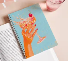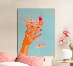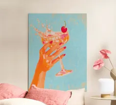 Un elegante primo piano di una mano che regge un martini con una ciliegia. Giocoso, affascinante e perfetto per gli amanti dei cocktail.
